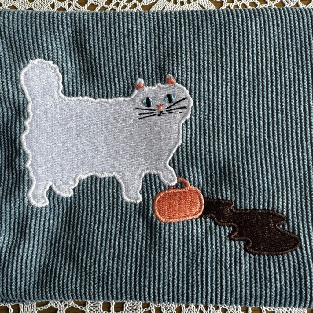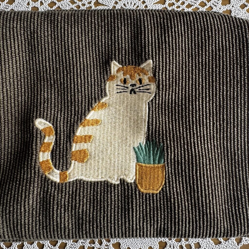 白猫とマグカップ、茶トラと猫草の刺繍が可愛いポーチです!