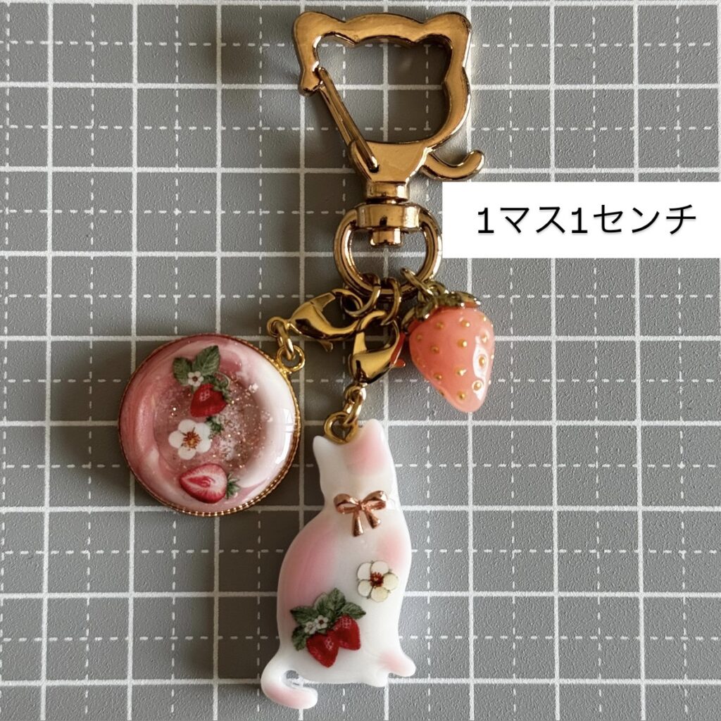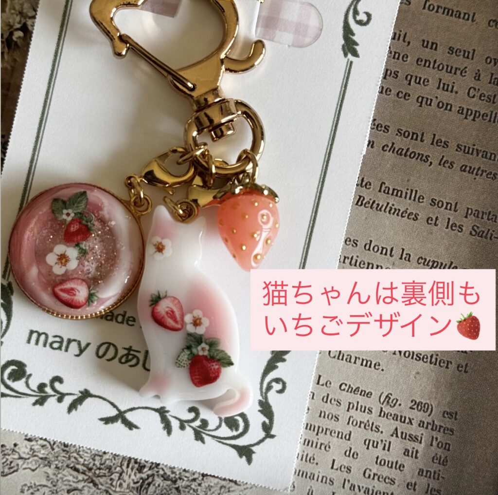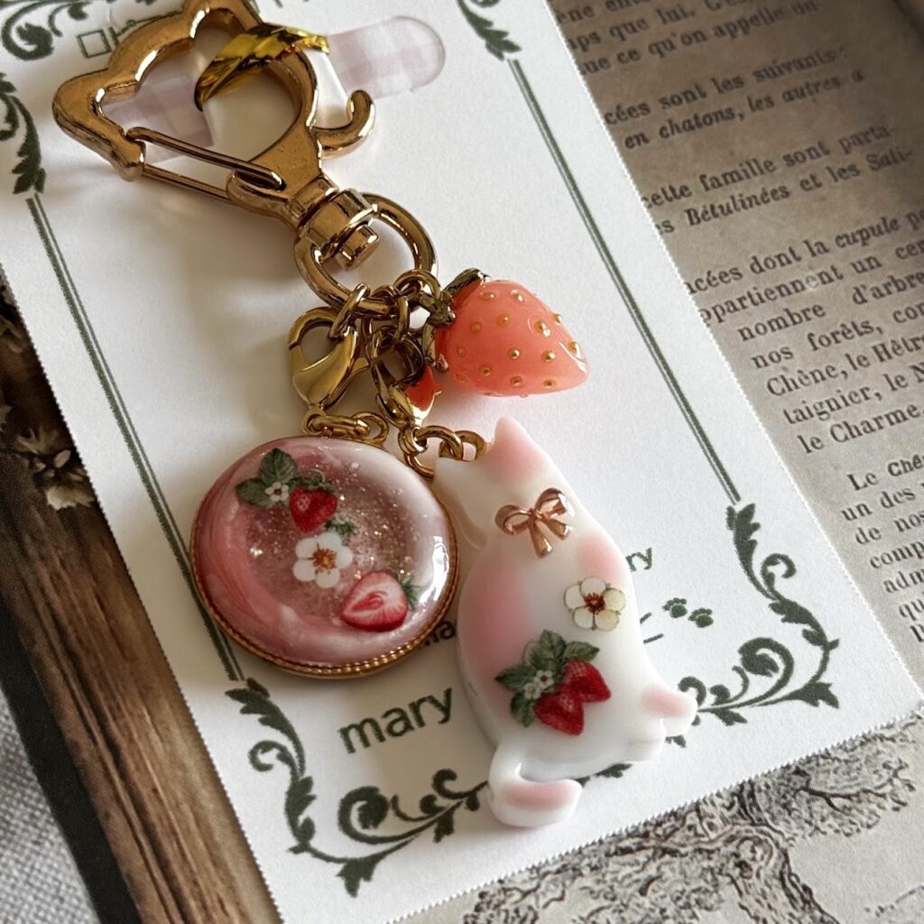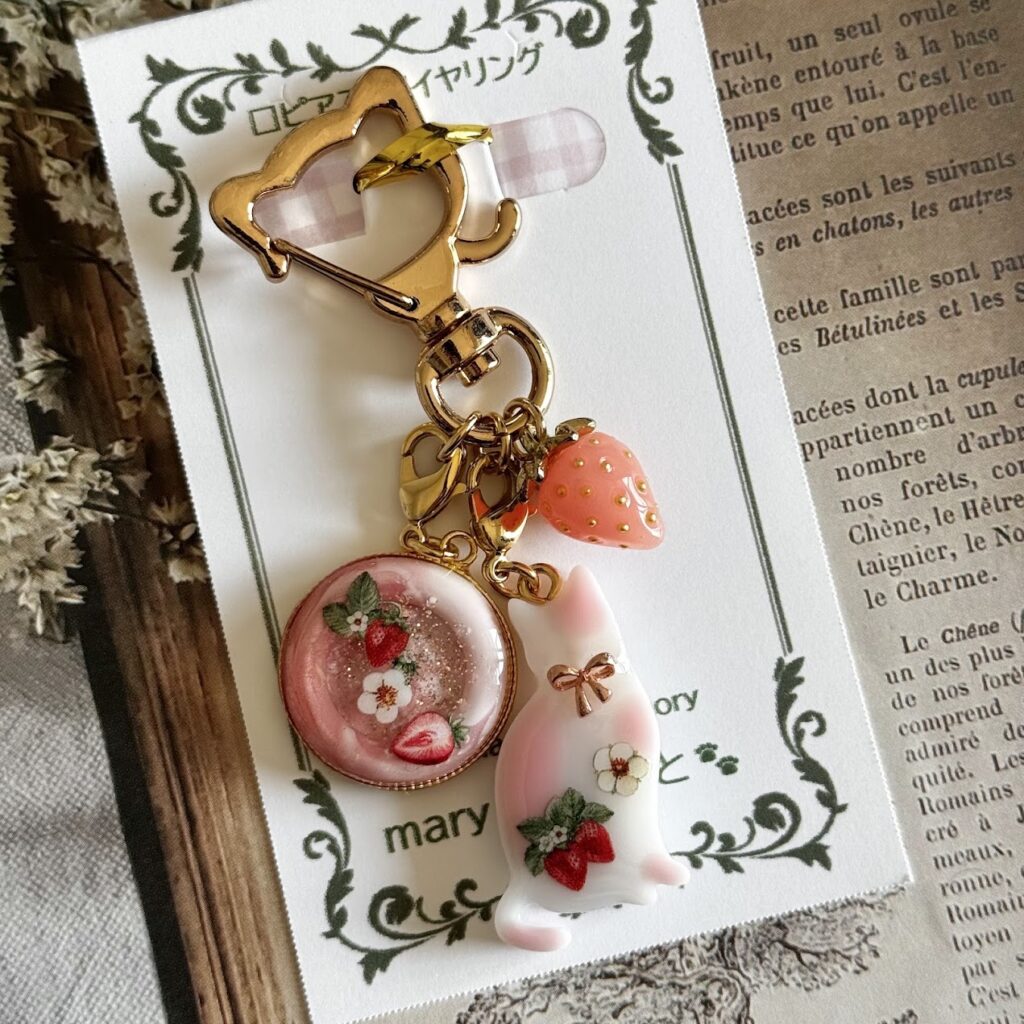 いちごミルクカラーの猫ちゃんが可愛らしいキーホルダーです🐈