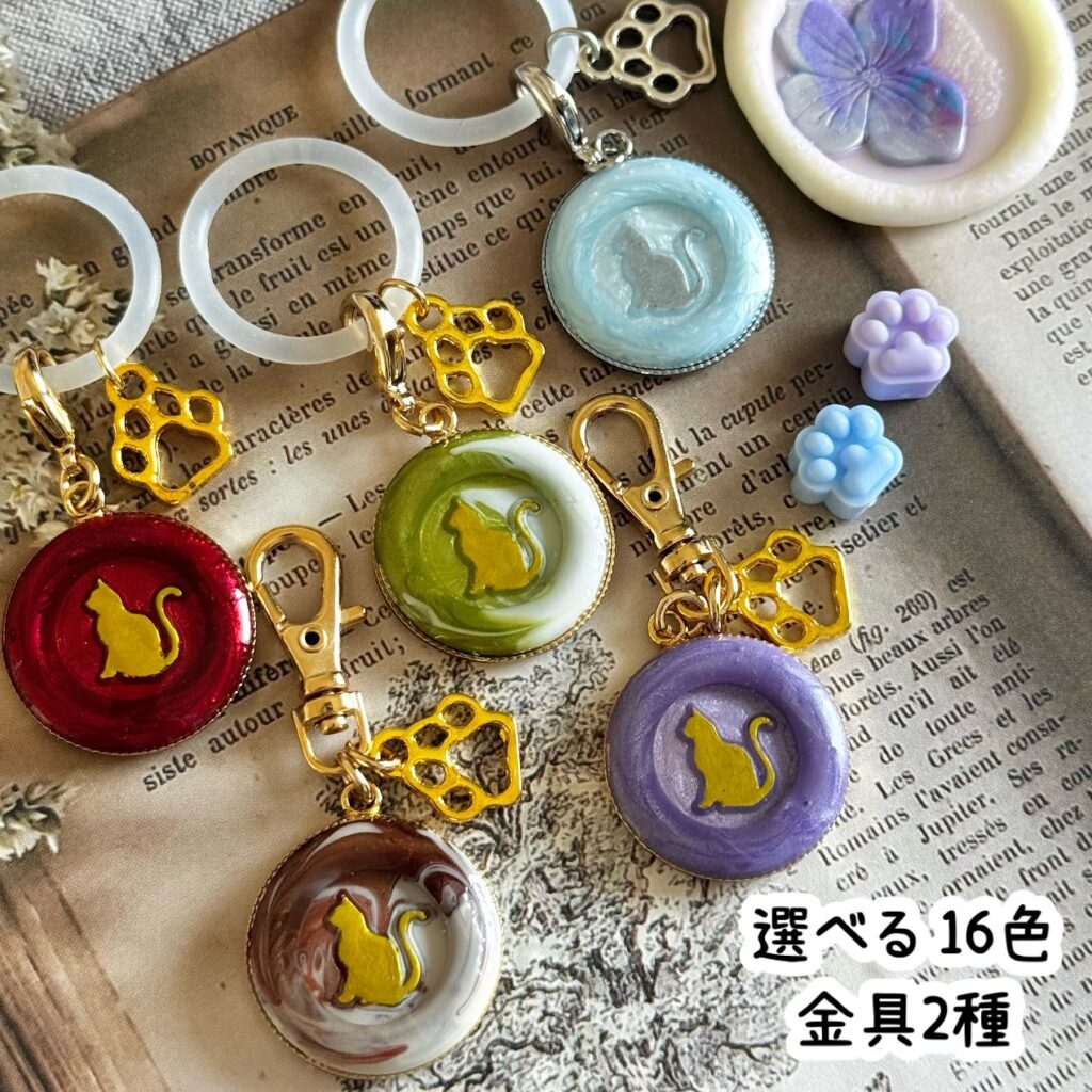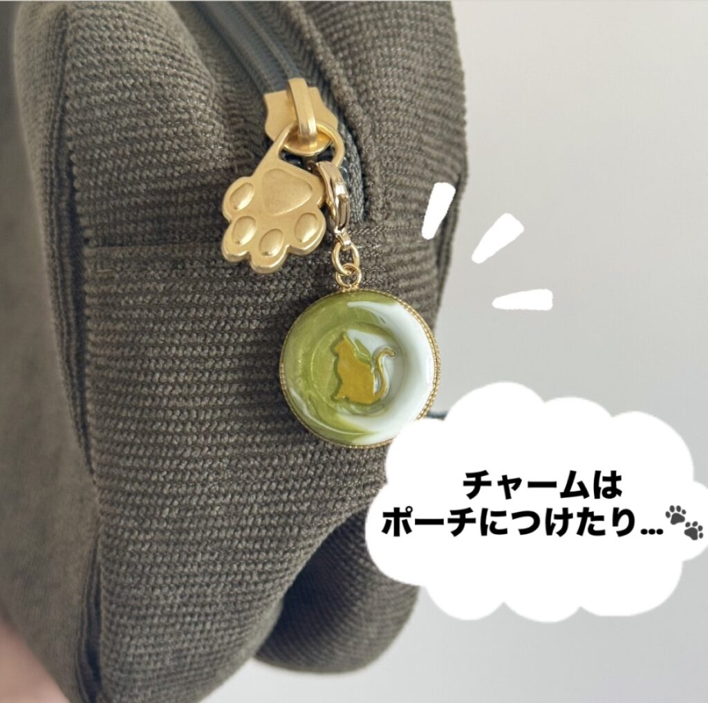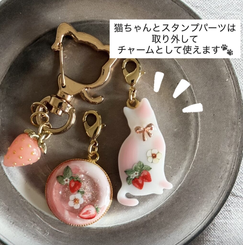 猫ちゃんとスタンプパーツはチャームになっており、取り外してお好きなところに付けられます!