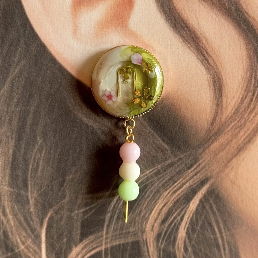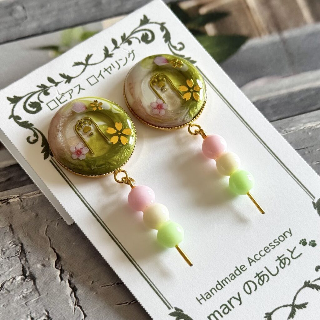 三色団子のチャームは、ビーズとQピンを組み合わせて作っています!💚