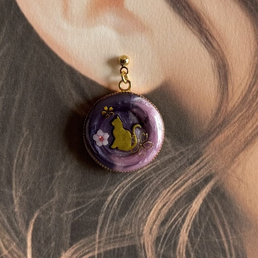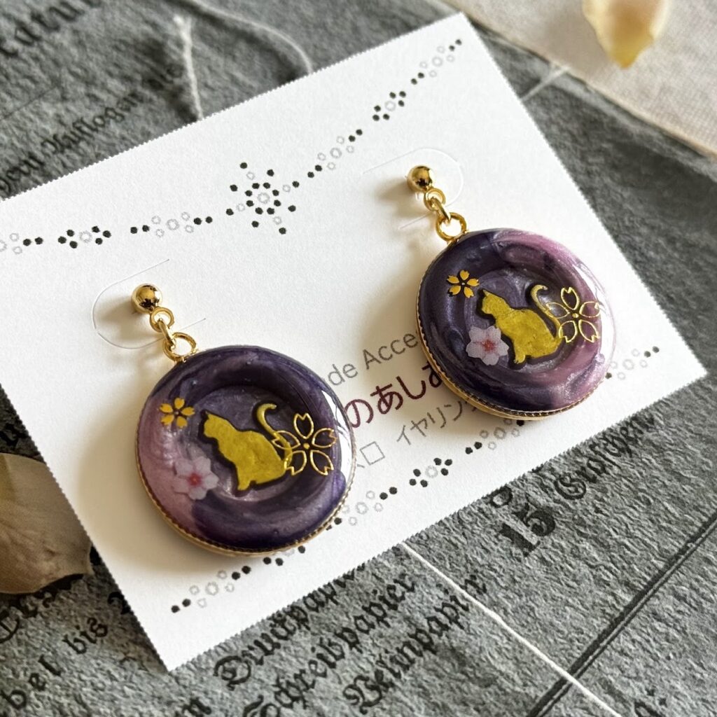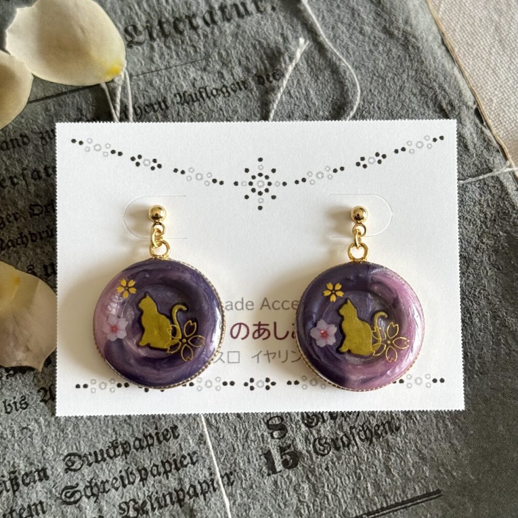 ・プチねこアソート🐾耳飾り(猫と夜桜セット)🌸