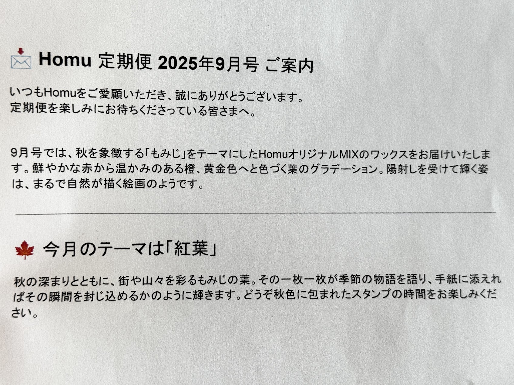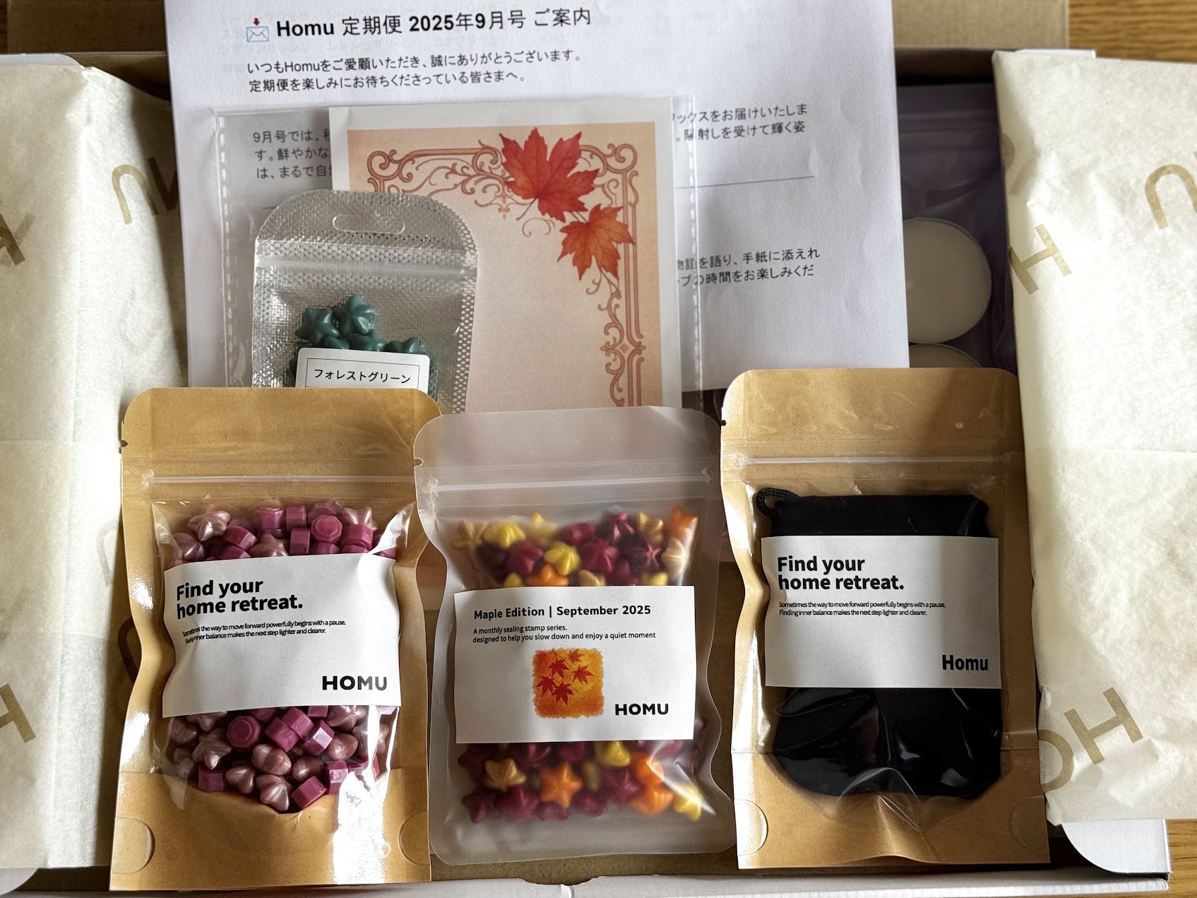 「HOMU(ホム)」さんより販売されている、毎月シーリングスタンプ用品が届くワクワクが詰まったサブスクリプション。