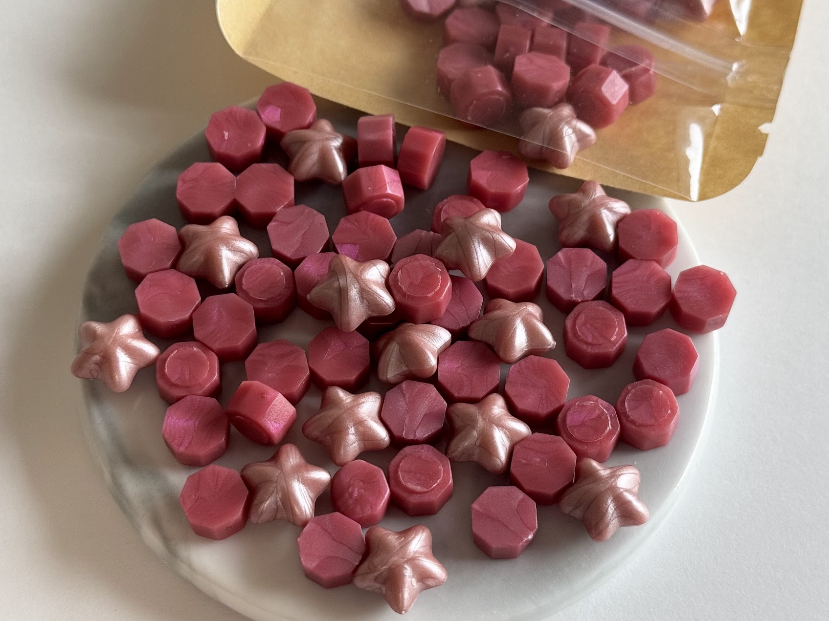 星型と八角のミックスで、くすみピンクや少し青みのあるローズピンクなど上品カラーの詰め合わせ🩷