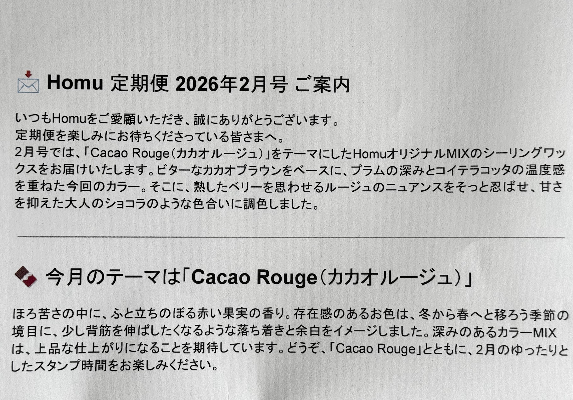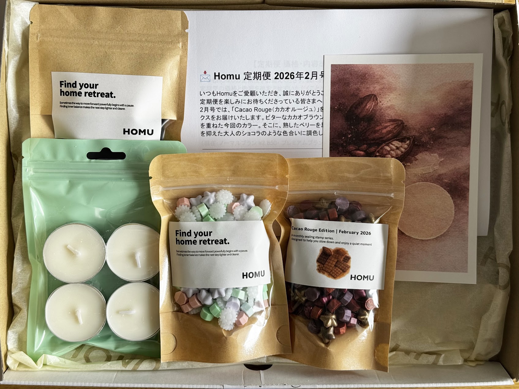 「HOMU(ホム)」さんより販売されている、毎月シーリングスタンプ用品が届くワクワクが詰まったサブスクリプション。