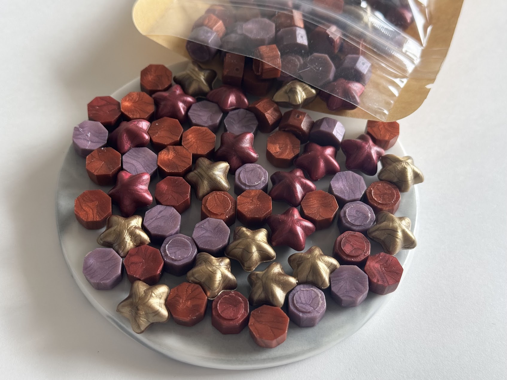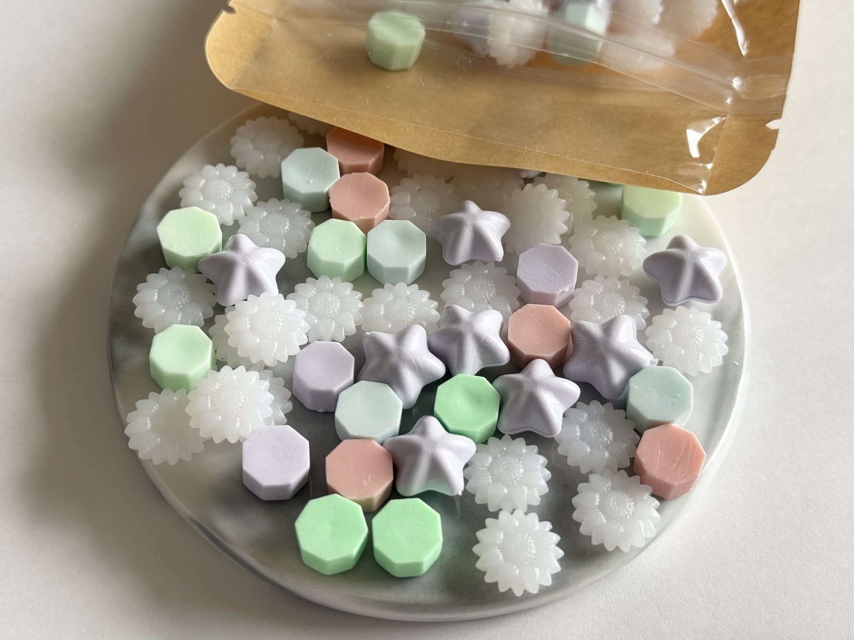 半透明のひまわりワックスに、淡い色合いの八角&星ワックスのミックスです🌈