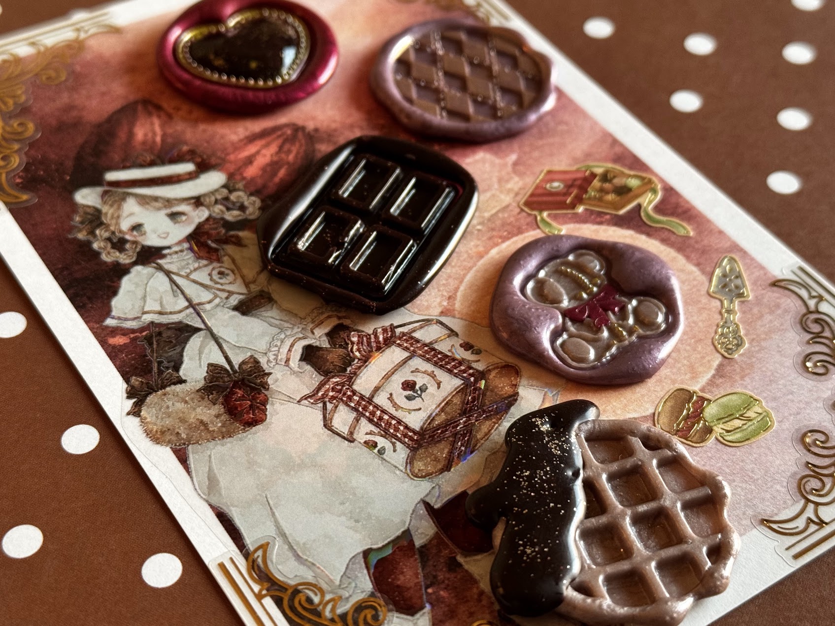 カカオルージュのワックスで捺したスタンプを使って、ミニカードコラージュを楽しみました!✨